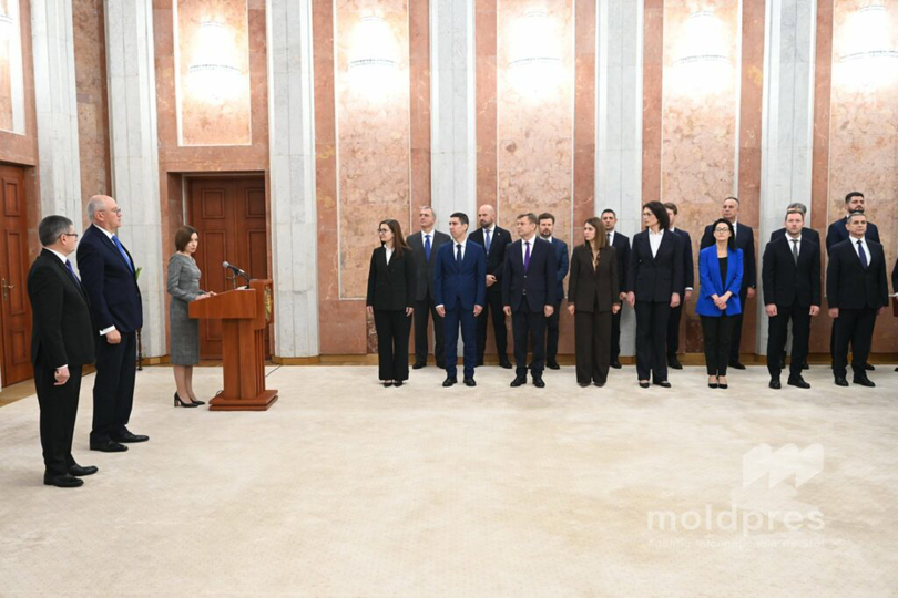 Guvernul condus de Alexandru Munteanu a intrat oficial în funcție sâmbătă, după ce membrii Cabinetului au depus jurământul la Președinția Republicii Moldova, în prezența Maiei Sandu și a lui Igor Grosu.